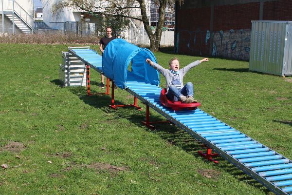 Die Rollenrutsche ist die ideale Ergänzung für Kindergeburtstage, Vereinsfeste etc. Nach einer Spielmobilschulung kannst du die Rollenrutsche bei uns mieten. Der Aufbau dauert ca. 60 Minuten.
