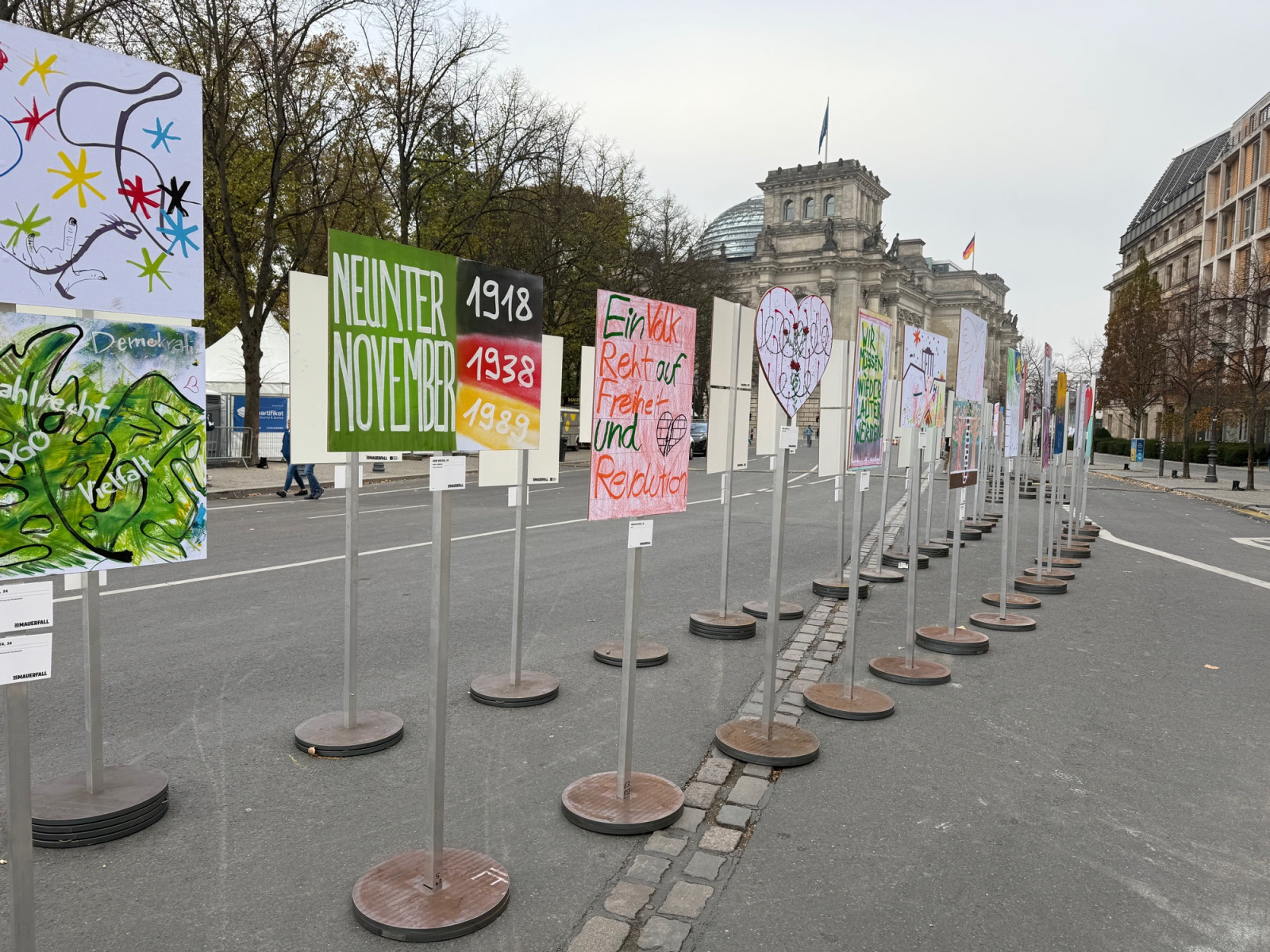 Da wir genau am 9. November in Berlin sein durften wurde der historische Anlass des 35. Jahrestages des Mauerfalls zum Besuch der Jubiläumsveranstaltung „Haltet die Freiheit hoch!“ am ehemaligen Mauerstreifen genutzt, um sich die vielen Plakate mit Erinnerungen und Wünschen anzusehen und dem Konzert der wahrscheinlich größten Rockband der Welt mit rund 700 Musiker*innen zu lauschen und gemeinsam mit den Berlinerinnen und Berlinern und Gästen aus aller Welt mitzusingen. Was für ein Erlebnis!