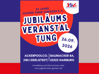 (JS) Am 19. Januar 2025 fand der „Neujahrsempfang“ von Jugend ohne Grenzen e.V. statt. Dieses Netzwerktreffen für Ehrenamtliche durften wir dankenswerterweise in den Räumlichkeiten der... Weiterlesen